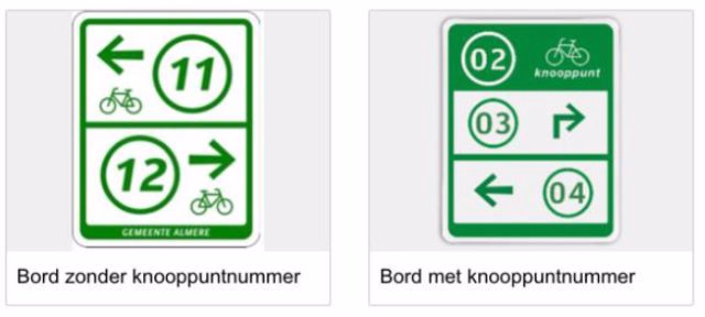 Bijna alle fietsers gebruiken de bewegwijzering van de knooppuntenroutes tijdens het fietsen. Tweederde maakt daarnaast gebruik van andere hulpmiddelen, ze schrijven bijvoorbeeld de nummers van de route op of gebruiken een routeplanner. 84 procent van de respondenten is bekend met het uitgangspunt dat als er op een kruispunt geen bordje staat je rechtdoor moet blijven gaan. 38 procent is bekend met de slogan ‘Geen gehoor, rechtdoor!’ die hierbij hoort.